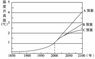 18.(04江苏31)对全球变暖的趋势,IPCC(全球政府间气候变化委员会)提出了三种不同的预案,其气温变化