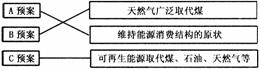(2)用直线将三种预案与其相应的能源消费结构连接起来。