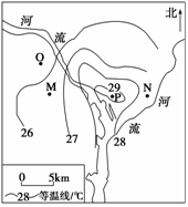 解析 从图中等温线分布来看,O、P的温差在3℃-5℃之间,即温差大于3℃