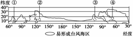 解析 从图中可以看出,日界线附近(180°附近)易形成台风海区的北界在15°N左右。