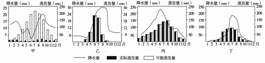 解析 由图中降水量、蒸发量的关系及各月降水量的分布,结合各气候类型的降水特点,综合可能蒸发量与实际蒸发量,可以判定。
