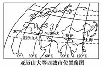 (2)读“亚历山大等四城市位置简图”及“气温曲线与降水量柱状图”,比较四城市的降水差异,并分析其原