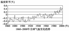 (08北京海淀区检测)温度距平是指该年平均气温与多年平均气温的差距。读下图,回答1-2题。
