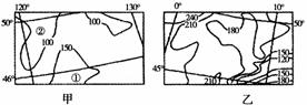 (1)从气压中心的位置判断,甲、乙两图中表示1月份的是 图。