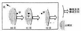 (08武汉调研)锋线指锋面与地面的交线,下图反映某地区某年2月10日-12日的锋线移动情况。读图回答13-14题。