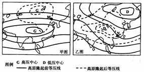 (3)根据甲图高原隆起前后M地风向的变化,说明甲图所示时期M地在高原隆起前后的气候特征。