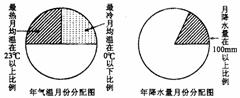 14.下图为“某地气温和降水扇形百分比图”,其气候类型为 ( )
