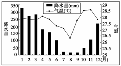 读爪哇岛气候资料图,判断该地的气候类型为