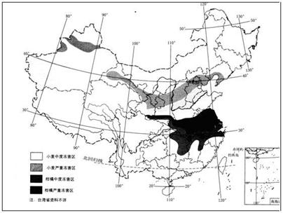 (2)指出图示区域小麦、柑橘冻害分布的共同特点。