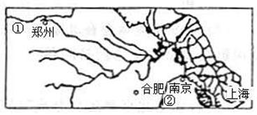 (1)图中①②所代表的河流分别是_________、___________。据图描述淮河的水系特征____________________________________________________________。