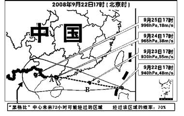 材料一 超强台风“黑格比”于2008年9月24日在广东茂名市的电白县陈村镇沿海登陆,给广东省阳江市造成较大损失。截至9月26日,台风共造成阳江市17人死亡2人失踪,初步统计,全市157、8万人不同程度受灾。据初步统计,全市直接经济损失达二十四点六亿元。