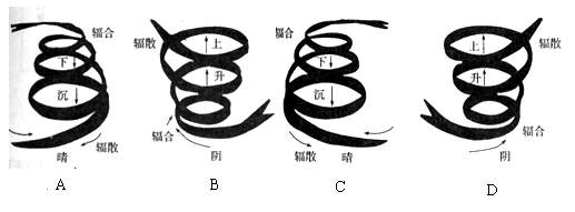 (5)以下能反映这次台风气流运动特征的示意图是 ( )