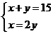 15. 解:设老师捐款x元,学生捐款y元.则有