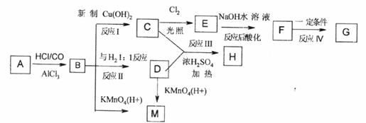 已知从A出发可发生下图所示的一系列反应,其中G为高分子化合物,化合物B的分子式为C8H8O,当以铁做催化剂进行氯化时,一元取代物只有两种。