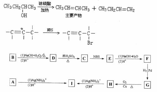 有机物A、B、C,分子式均为C5H8O2,有关的转化关系如下图所示。A的碳链无支链,且1mol A能与4 mol银氨溶液完全反应。请给出A、B、C、D、E、F、G、H、I的结构简式。