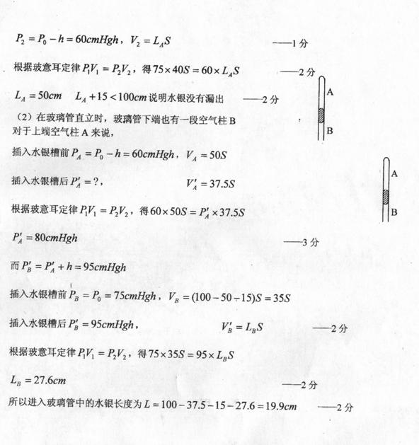 ,设在整个过程中空气柱的温度不变。求:(1)玻璃管缓慢直立起来时是否有水银漏出?说明理由。(2)最终水银槽中进入玻璃管的水银长度。