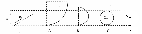 (2009广州市高三模拟)如图所示,小球以初速度为v0从光滑斜面底部向上滑,恰能到达最大高度为h的斜面顶部。右图中A是内轨半径大于h的光滑轨道、B是内轨半径小于h的光滑轨道、C是内轨半径等于h光滑轨道、D是长为