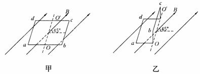 11.(09年安徽卷)20. 如图甲所示,一个电阻为R,面积为S的矩形导线框abcd,水平旋转在匀强磁场中,磁场的磁感应强度为B,方向与ad边垂直并与线框平面成450角,o、o’ 分别是ab和cd边的中点。现将线框右半边obco’ 绕oo’ 逆时针900到图乙所示位置。在这一过程中,导线中通过的电荷量是 ( A )