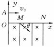 (09年天津卷)11.(18分)如图所示,直角坐标系xOy位于竖直平面内,在水平的x轴下方存在匀强磁场和匀强电场,磁场的磁感应为B,方向垂直xOy平面向里,电场线平行于y轴。一质量为m、电荷量为q的带正电的小球,从y轴上的A点水平向右抛出,经x轴上的M点进入电场和磁场,恰能做匀速圆周运动,从x轴上的N点第一次离开电场和磁场,MN之间的距离为L,小球过M点时的速度方向与x轴的方向夹角为