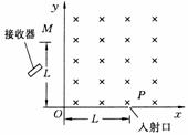 (09年福建卷)22.(20分)图为可测定比荷的某装置的简化示意图,在第一象限区域内有垂直于纸面向里的匀强磁场,磁感应强度大小B=2.0×10-3T,在X轴上距坐标原点L=0.50m的P处为离子的入射口,在Y上安放接收器,现将一带正电荷的粒子以v=3.5×104m/s的速率从P处射入磁场,若粒子在y轴上距坐标原点L=0.50m的M处被观测到,且运动轨迹半径恰好最小,设带电粒子的质量为m,电量为q,不记其重力。