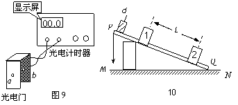 (07年广东)像打点计时器一样,光电计时器也是一种研究物体运动情况的常用计时仪器,其结构如图9所示,a、b分别是光电门的激光发射和接收装置,当有物体从a、b间通过时,光电计时器就可以显示物体的挡光时间。