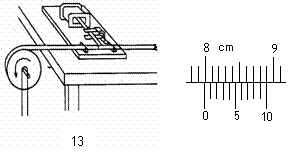 B.如图13所示,将电磁打点计时器固定在桌面上,将纸带的一端穿过打点计时器的限位孔后,固定在待测圆盘的侧面上,使得圆盘转动时,纸带可以卷在圆盘的侧面上