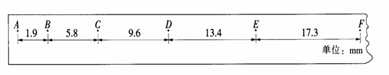 (2)这位同学从打出的几条纸带中,挑出较为理想的一条纸带。把开始打的第一个点标为A,随后连续的几个点依次标记为点B、C、D、E和F,测量出各点间的距离,如图7所示。