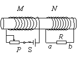 (09·西城模拟)如图,线圈M和线圈N绕在同一铁芯上。M与电源、开关、滑动变阻器相连,P为滑动变阻器的滑动端,开关S处于闭合状态。N与电阻R相连。下列说法正确的是