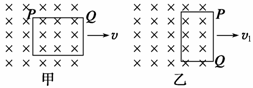磁感应强度为B的匀强磁场中以速度v速拉出,求拉力的功及PQ两点间的电势差。如果线框以图乙方式匀速拉出,为使外力的功与图甲方式相同,拉出的速度v1应为多大?此时PQ两点间的电势差多大?