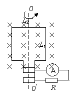 轴匀速转动,磁场方向与转轴垂直.已知线圈匝数n=400,电阻r=0.1Ω,长L1=0.05m,宽L2=0.04m,角速度=l00 rad/s,磁场的磁感应强度B=0.25T.线圈两端外接电阻R=9.9Ω的用电器和一个交流电流表(内阻不计),求: