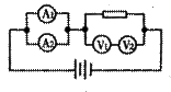 2.(09·盐城中学模拟)四个相同的小量程电流表(表头)分别改装成两个电流表A1、A2和两个电压表V1、V2.已知电流表A1的量程大于A2的量程,电压表V1的量程大V2的量程,改装好后把它们按图示接入电路,则 ( AD )