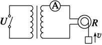 8.(烟台市2008届第一学期期末考)如图所示,一理想变压器原、副线圈的匝数比为n:1. 原线圈接正弦交变电压U,副线圈接有一个交流电流表和一个电动机. 电动机线圈电阻为R,当变压器的输入端接通电源后,电流表的示数为I,电动机带动一质量为m的重物以速度v匀速上升,则下列判断正确的是 ( D )