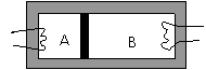 (上海市南汇区)如图,水平放置的汽缸内壁光滑,一个不导热的活塞将汽缸内的气体分为A、B两部分,两部分气体可以分别通过放在其中的电热丝加热。开始时,A气体的体积是B的一半,A气体的温度是17ºC,B气体的温度是27ºC,活塞静止。现缓慢加热汽缸内气体, 使A、B两部分气体的温度都升高10ºC,在此过程中活塞向哪个方向移动?