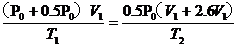1.5p0´V1=0.5p0´V2(2分),V2=3V1,