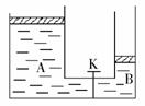 (北京宣武区2008年二模)如图所示,容器A、B各有一个可自由移动的轻活塞,活塞下面是水,上面是大气,大气压恒定,整个装置与外界绝热(即无热交换).原先,A中水面比B中的高,打开阀门K,使A中的水逐渐向B中流,最后达到平衡。那么在这个过程中 ( )