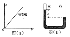(镇江市2008届期初教学情况调查)当质量一定的气体保持体积不变时,气体的压强 p 与热力学温度 T 之间存在着正比关系,如图(a)所示.在图(b)所示的 u 形管中装有水银,左右两部分都密封着空气,两水银面的高度差为 h ,把水银管浸没在热水中,则高度差 h 将_____ (选填“增大”、“减小”或“不变” ) ,请你运用气体的等容线(即p一 T 图象)写出判断的过程.