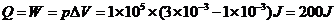 (2)根据热力学第一定律 △U=W+Q=-4J (2分)