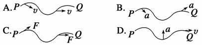 3.(07·广东理科基础·5)质点在一平面内沿曲线由P运动到Q,如果用v、a、F分别表示质点运动过程中的速度、加速度和受到的合外力,下列图象可能正确的是                        (  )