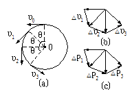 平抛运动中,由于物体的加速度g和合外力mg均恒定,所以在任意相等的时间间隔内,物体的速度和动量增量均相等,如图-1中(a)、(b)所示,匀速圆周运动中,由于物体的加速度a向和合外力F向均具备着“大小恒定、方向变化”的特征,所以在任意相等的时间间隔内,物体的速度和动量的增量相应也都具备着“大小相等、方向不同”的特征,如图9-2中(b)、(c)所示。
