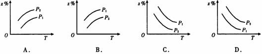 2Z(气)+热量,在不同温度、不同压强(P1>P2)下,达到平衡时,混合气体中Z的百分含量随温度变化的曲线应为( )