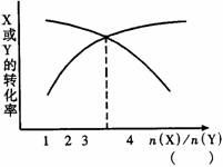 9.一定条件下,将X和Y两种物质按不同比例放入密闭容器中,反应达到平衡后,测得X、Y转化率与起始时两种物质的量之比[n(X)/n(Y)]的关系如下图,则X和Y反应的方程式可表示为( )