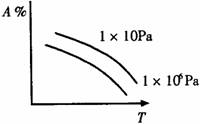 A%为气态反应物在平衡体系中的百分含量,符合曲线的反应是