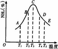 2NH3,并分别在t秒时测定其中NH3的体积分数,绘图如下: