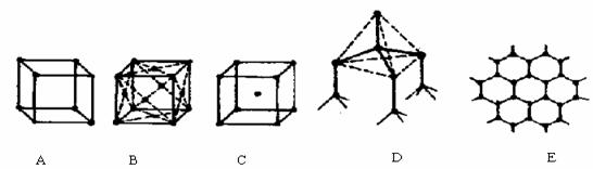 16、(15分)下图是表示一些晶体中的某些结构,它们分别是NaCl、CsCl、干冰、金刚石、石墨结构中的某一种的某一部分。
