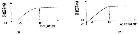 ①如图甲所示:即使CO2浓度超过B点,光合作用强度也不再增强,此时若能为暗反应提供更多的______,光合作用强度还会继续增强。请说出叶绿体中类囊体薄膜与光合作用相适应的特点____________。
