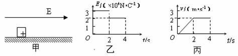 25.(17分)如图甲所示,电荷量为q=1×10-4C的带正电的小物块置于绝缘水平面上,所在空间存在方向沿水平向右的电场,电场强度E的大小与时间t的关系如图乙所示,物块运动速度v与时间t的关系如图丙所示,取重力加速度g=10m/s2。