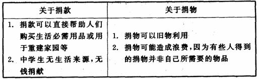 近来,长江中学开展“献爱心,‘送沮暖”活动,号召广大学生向贫困或受灾地区捐款捐物。请你参考下列表格要点提示,以“捐款还是捐物”为中心写一篇120词左右的英语短文;可适当增加内容。
