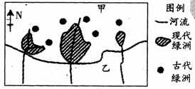 下图为我国西北地区现代绿洲和古代绿洲分布示意图,读图回答16-17题。