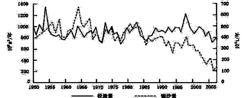 C.1950~2005年输沙量的变化率高于径流量的变化率