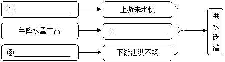 (2)据图中信息,探究甲区域a河下游地区过去经常洪水泛滥的自然原因,填写表格内容。